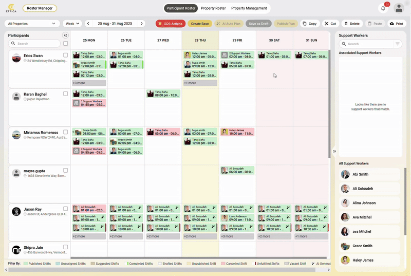 Easily manage shared SIL housing with Effica. With just a few clicks, build complete rosters for all your shared homes, coordinate supports, and simplify billing in one simple platform. Effica makes shared SIL housing simple.